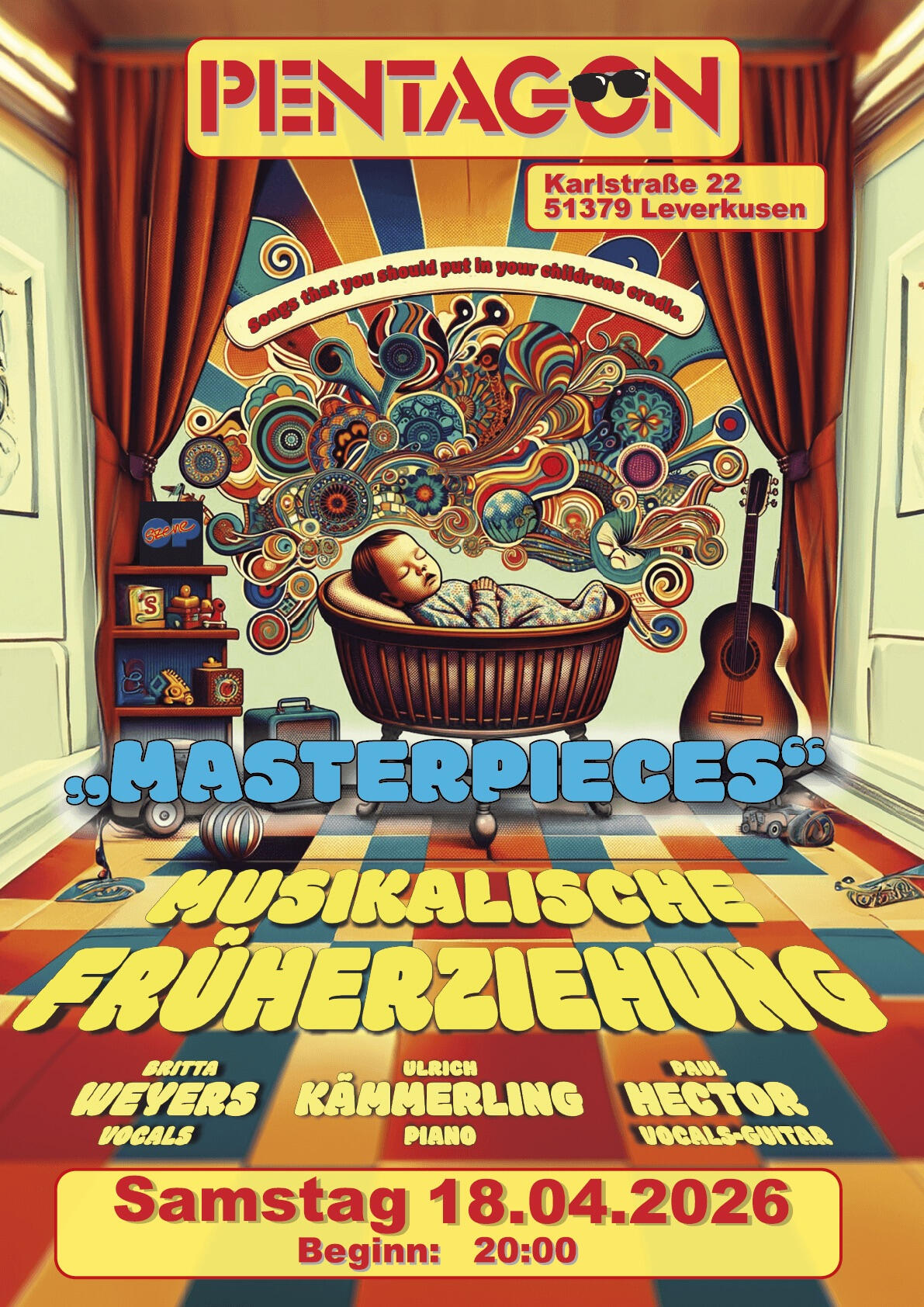 Musik für Fortgeschrittene. – Und für alle, die es werden wollen.Wer glaubt, bei „Musikalischer Früherziehung“ ginge es um Triangel, Klanghölzer und Blockflöte, war vermutlich noch nie auf einem ihrer Konzerte.Die drei Musiker Britta Weyers (Gesang), Paul Hector (Gitarre, Gesang) und Ulrich Kämmerling (Tasteninstrumente) haben aus ihrem augenzwinkernden Bandnamen längst ein Programm gemacht: musikalische Neugier, spielerischer Ernst und die Lust, große Songs neu zu entdecken.Nach dem erfolgreichen Programm „Songs, die Du Deinem Kind in die Wiege legen solltest“ – einer liebevoll kuratierten Sammlung musikalischer DNA von Bowie bis Waits – geht die Band nun einen Schritt weiter.Das aktuelle Programm heißt: MASTERPIECESIm Zentrum stehen Songs, die mehr sind als Hits.Songs, die Generationen geprägt haben.